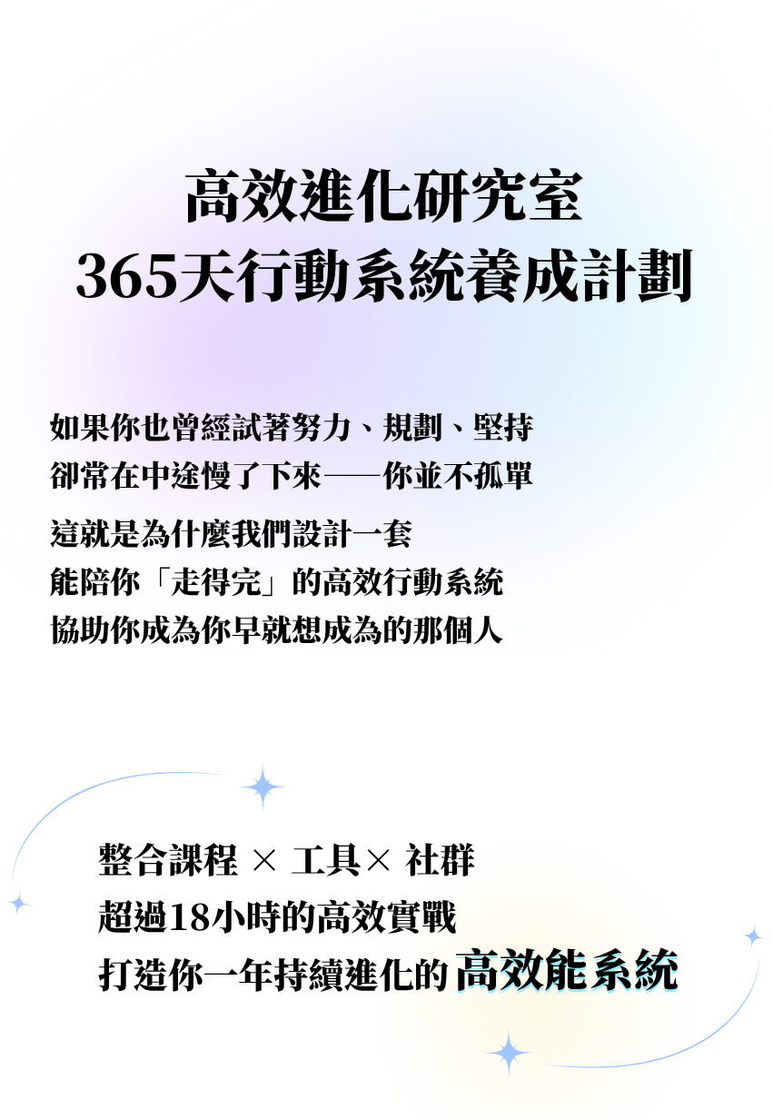 幫你建立穩定行動節奏,不再三天熱度、計畫半途而廢。