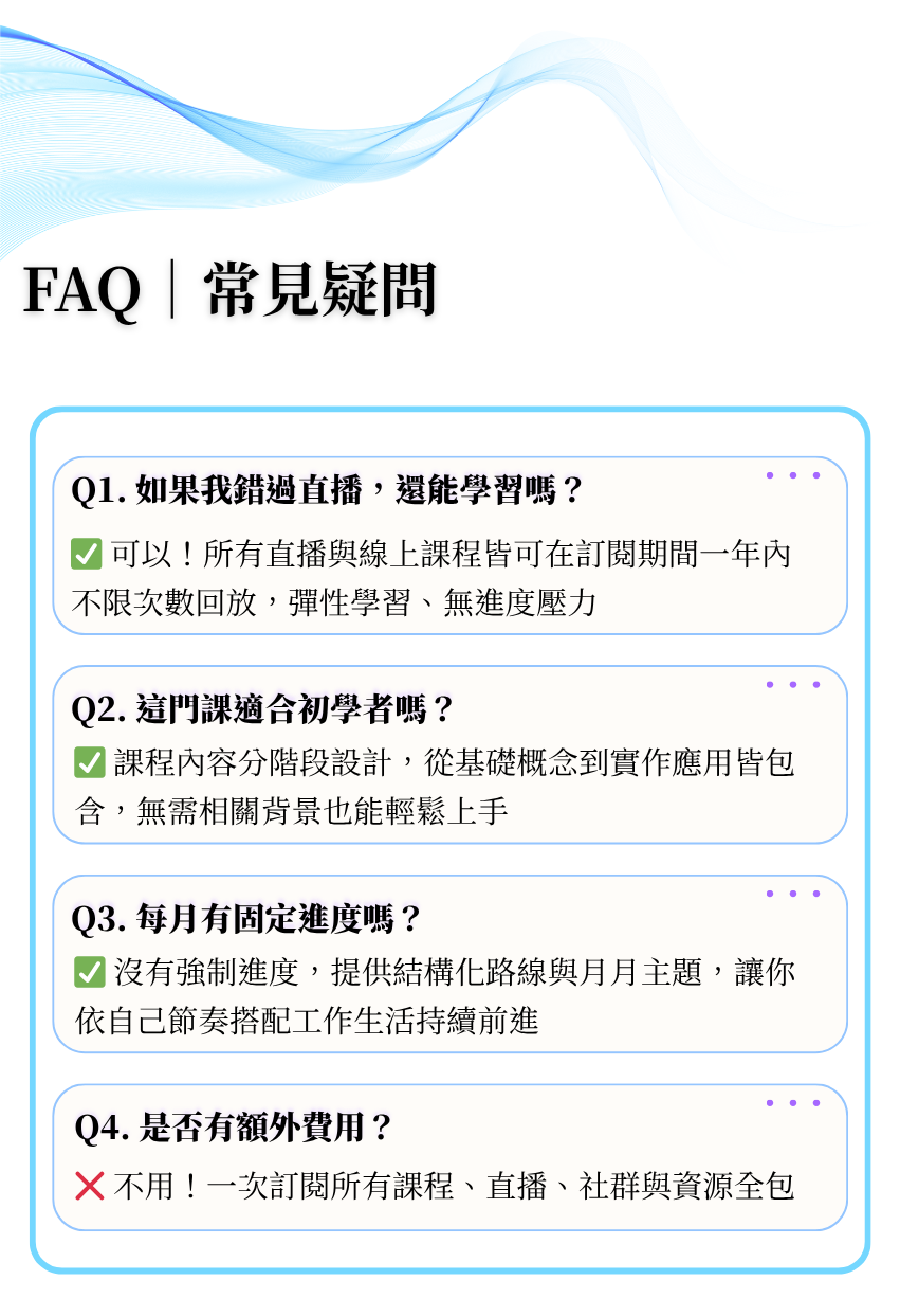 📅 每月 1 場直播 + 工具包,聚焦12項高效關鍵力