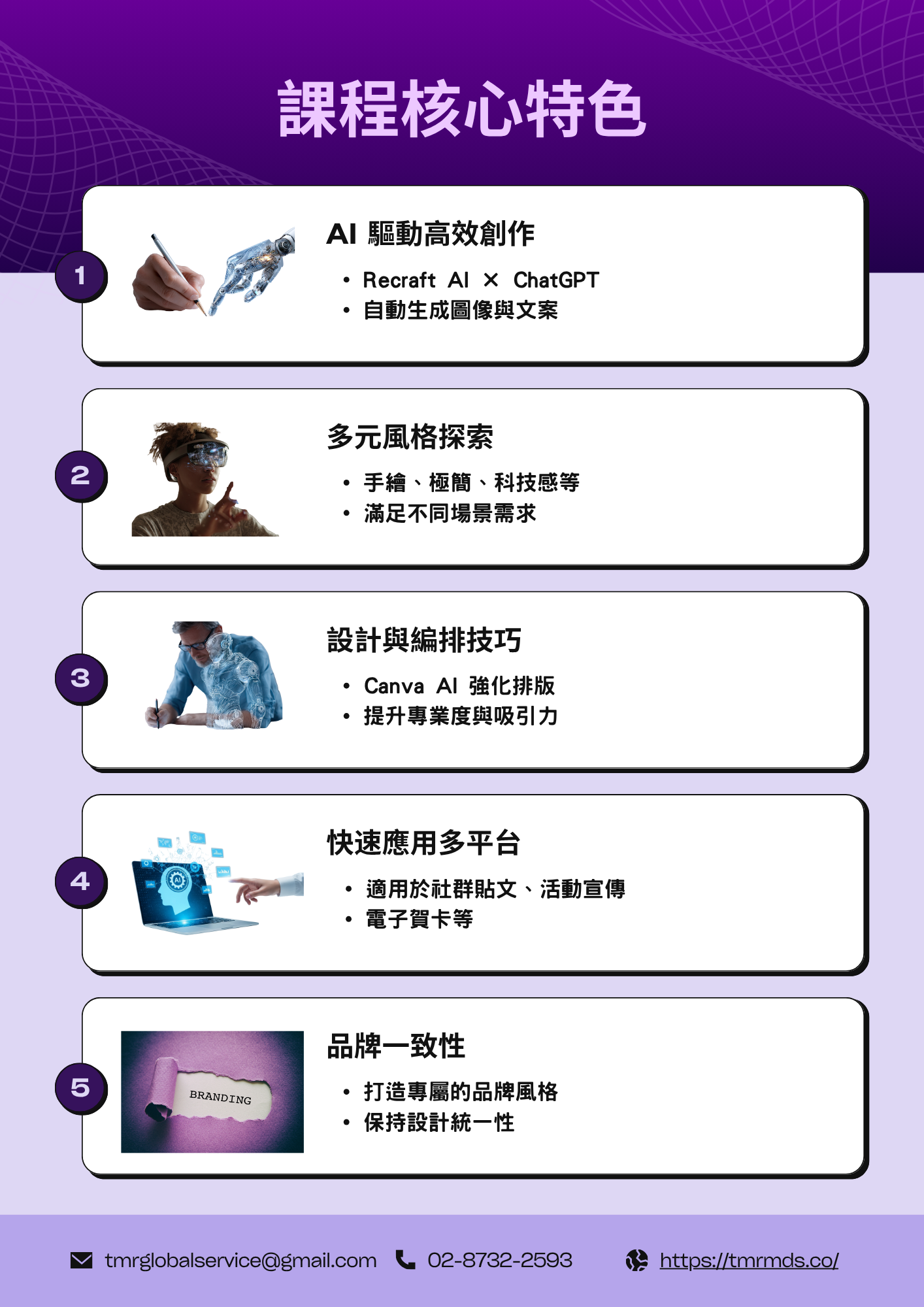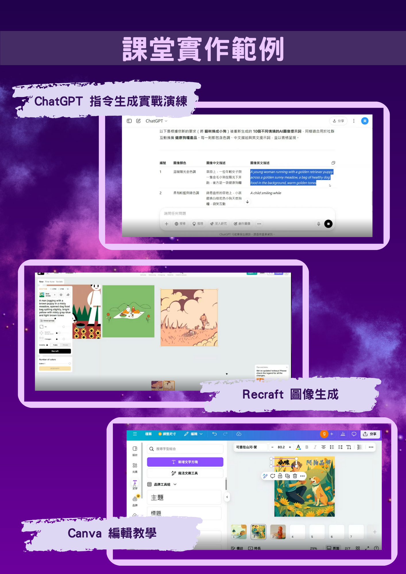 ✅ 打造吸睛視覺文案:運用 AI 生成標題、標語與產品名稱,讓圖像更具故事感與吸引力。